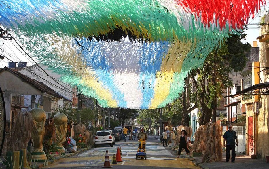 Alleen nog de leerkrachten en sommige ambtenaren voeren nog actie, maar er wordt de komende vier weken amper gewerkt: het lijkt heel erg op carnaval, maar dan uitsluitend in de kleuren geel en groen. Het is verbluffend in hoeveel combinaties die kleuren kunnen verwerkt worden, echt leuk om te zien en ik denk dat zo één op twee personen op straat in de Braziliaanse kleuren is uitgedost.